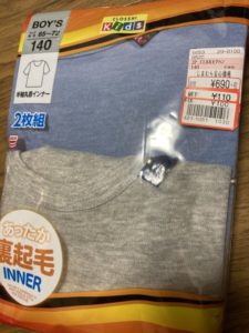 肌着100円(画像はキッズ男の子ですが、80~のベビーサイズや女の子物もありました。)